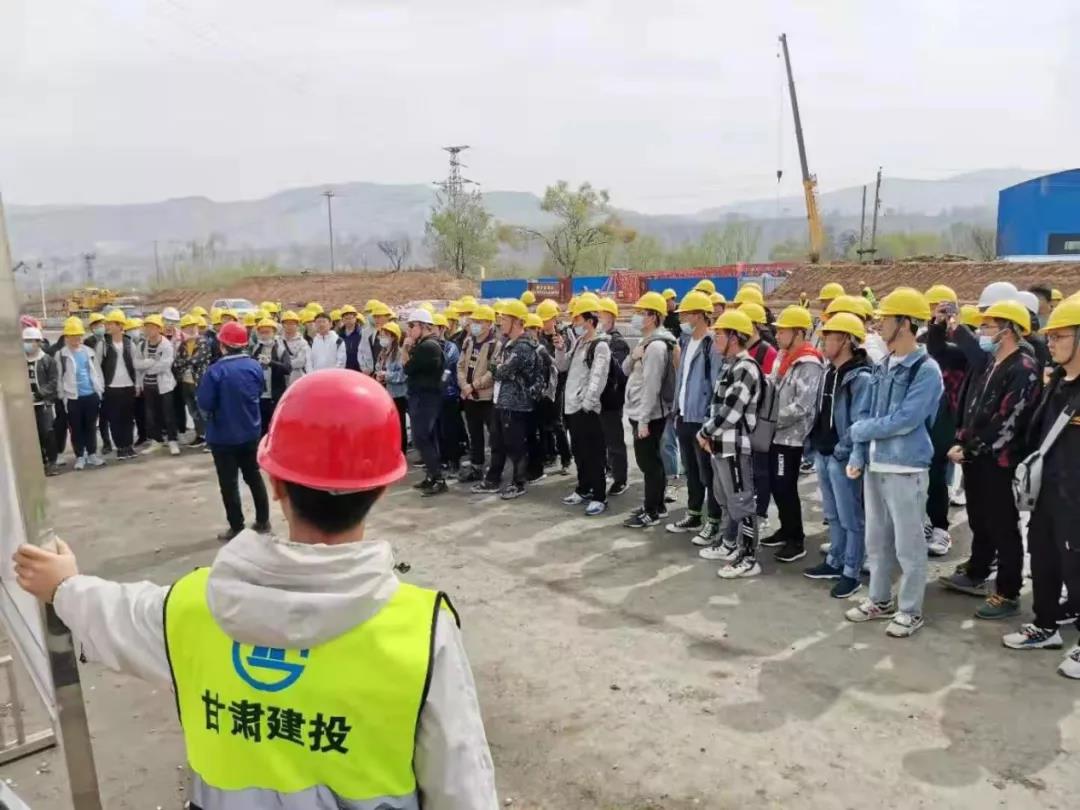 为响应国家深化产教融合、校企合作的政策,4月12日上午,隧道公司四公司临夏环城北路建设工程四区项目迎来兰州交通大学土木工程学院2017级道路与铁道工程专业近120名学生的观摩团。