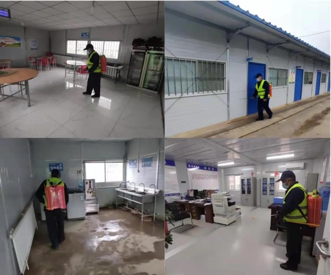 项目部及时储备各类防疫及生产生活物资,做好项目驻地安全防护。由专人负责每日对办公区、生活区、宿舍区等公共场所进行消杀,补足疫情防控短板漏项,加强薄弱环节的排查整改,切实营造良好的安全卫生环境。