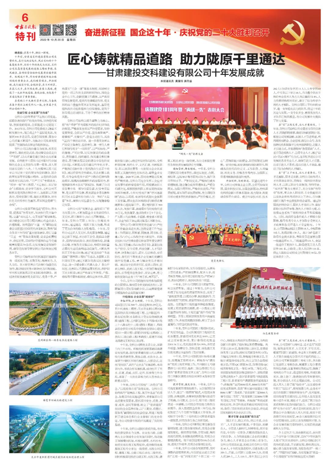 【编者按】:荏苒十年,弹指一挥间。十年前,甘肃省交科建设有限公司乘势而生,在行业跌宕起伏、风云变幻的十个春夏秋冬中,历经十年的洗礼与沉淀,交科公司在高质量发展的道路上蹄疾步稳、乘风破浪,各项经营指标和发展质效稳步提升。纵观这十年,作为bevictor伟德官网市政公路领域的重要企业,我们艰苦创业,开拓创新,我们诚实守信,合规经营,在兰州新区,在花儿之乡,在河西走廊,在黄土高坡,建设了一大批市政道路、县域公路,为陇原千里通达做出了重要贡献。