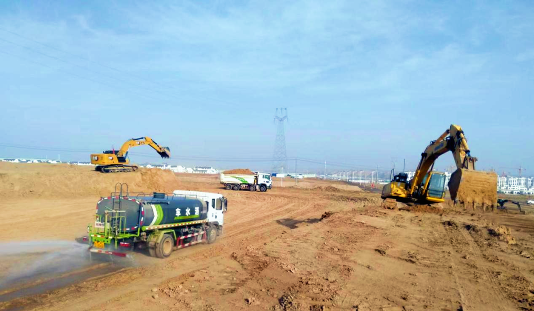 在大型土石方施工过程中,严格管控现场扬尘是检验项目建设水平的一个重要标准。项目部始终抓好文明施工,在施工现场配备洒水车辆,对作业场地及运输车辆及时清扫冲洗、洒水降尘,保证场地及车辆清洁。在“快马加鞭”抢抓工期的同时,项目部对工程质量安全也进行严格把控。施工现场安排水车每天对施工坡面进行洒水固化,防止坡面塌方;对完成的工作面及时进行复测并进行压实度检测,保证工程质量符合标准。项目部将施工现场划分成多个区域,由现场管理人员负责区域巡检,对过程中易出现的安全质量隐患进行排查,从源头杜绝安全事故的发生。