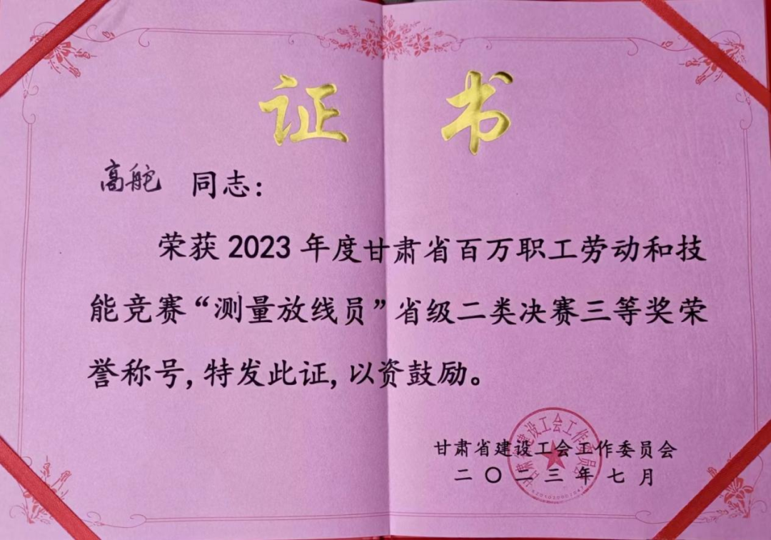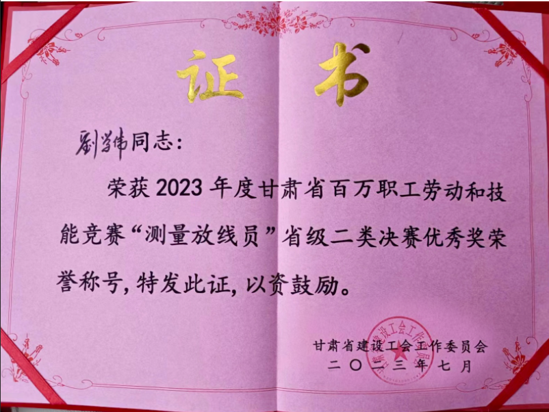 7月12日,2023年甘肃省百万职工劳动和技能竞赛“测量放线员”省级二类决赛在兰州新区落下帷幕,交科公司二公司高舵、三公司刘学伟分别获得三等奖和优秀奖。开展此类竞赛旨在深入推进产业工人队伍建设改革,促进产业工人技能提升、提高职业技能竞赛质量,进一步实现“以赛代培、以培促赛”的目的,全省建筑业系统共17家单位34名选手入围决赛。