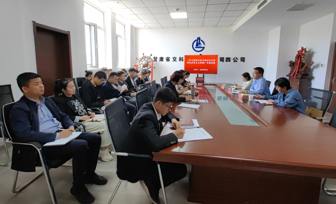 5月18日,交科公司总会计师党存琳一行深入四公司讲授党课并调研指导工作。四公司机关全体职工参加。
