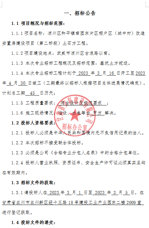 <h3>凉州区和平镇南园东片区棚户区（城中村）改造安置房建设项目（第二标段）土石方工程招标公告</h3>
