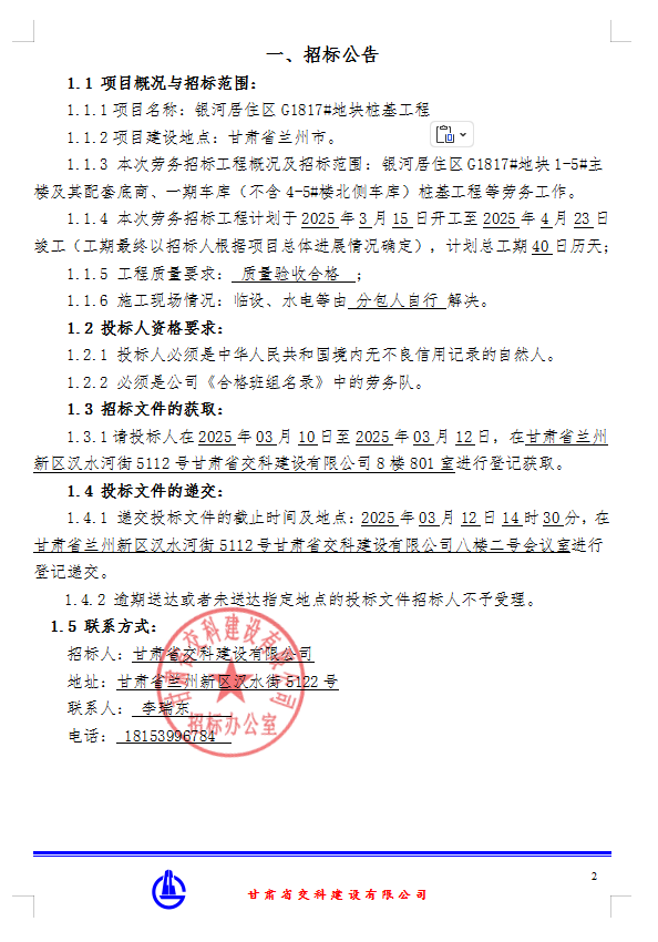 下一篇:银河居住区G1817#地块桩基工程混凝土招标公告