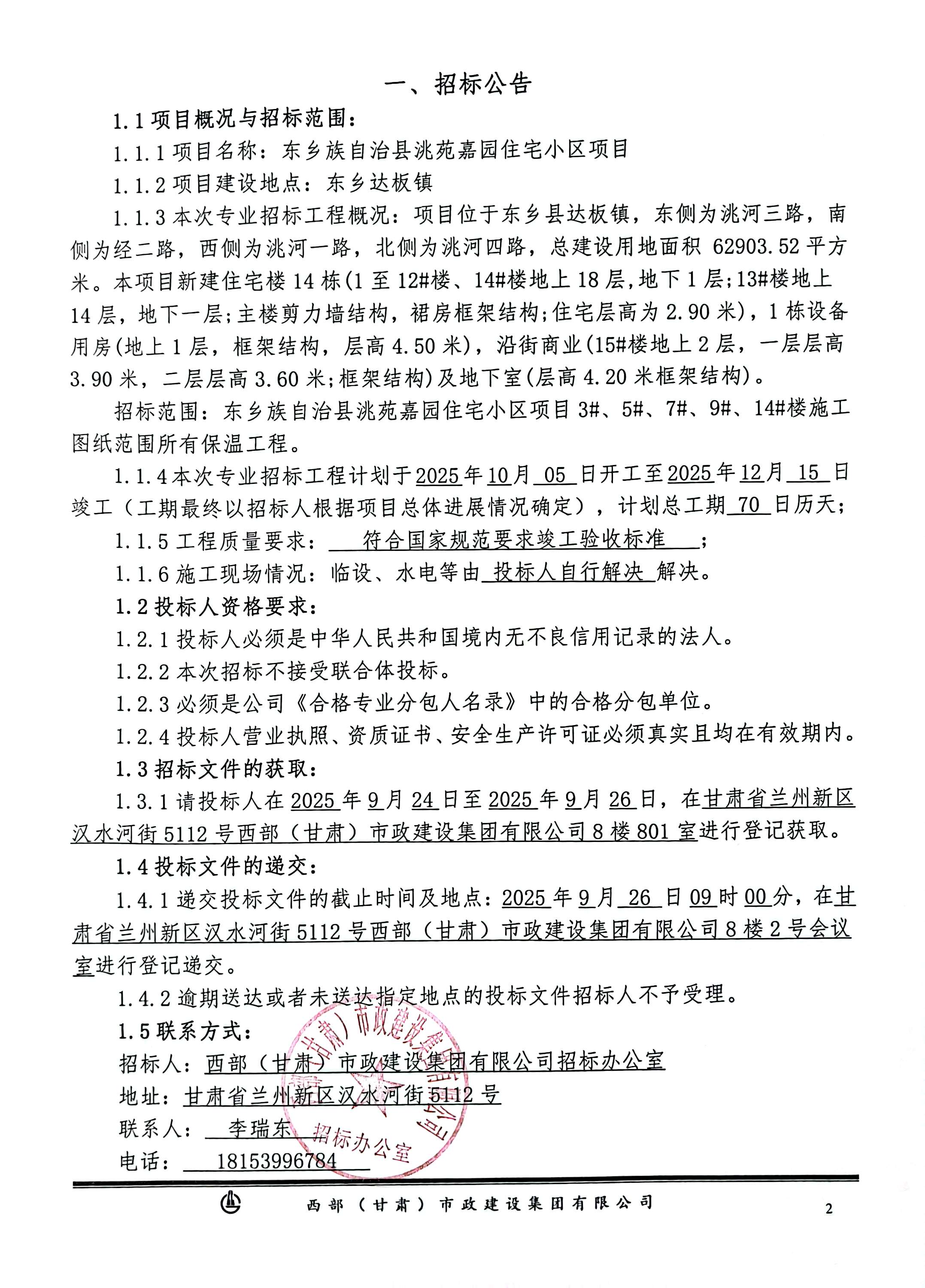 东乡族自治县洮苑嘉园住宅小区项目-保温工程-招标公告